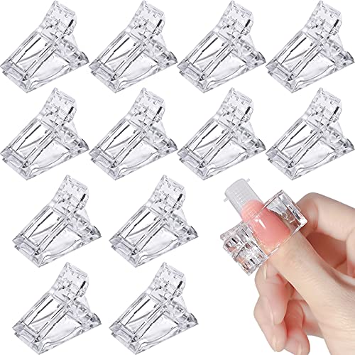 Winfred 12 Pezzi Clip per Unghie, Trasparente Unghie Clips per Prolunga delle Unghie Gel, Clip di Fissaggio per Colla di Cristallo, Strumento per Clip per Unghie Finte, Clip Nail Art
