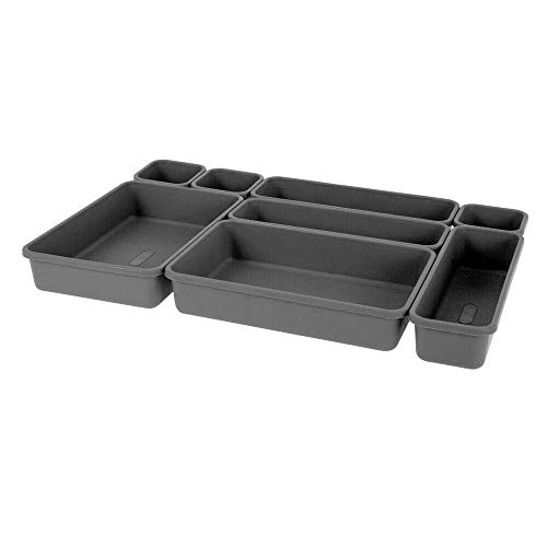 WingFly Cassettiera Organizer per Cassetti Componibile 8 Vani per Ufficio, Cucina, Bagno e Armadio-Portacancelleria (1Set) (Nero)