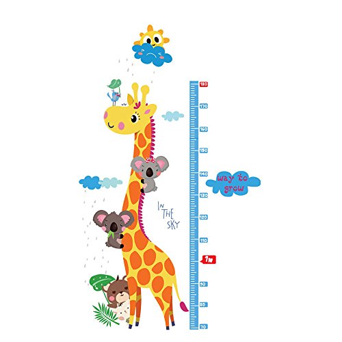 Winhappyhome Cute Animals Kids Growth Chart Stickers Wall Art Decals for Children Bedroom Nursery Background Removable Decor Decal