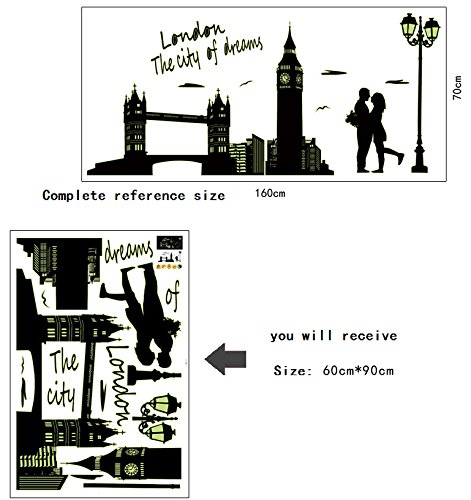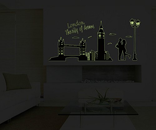 Winhappyhome London Bridge Night Scene Wall Sticker Home Decor per Camera da letto, Soggiorno, Finestra rimovibile nottilucenti Stickers