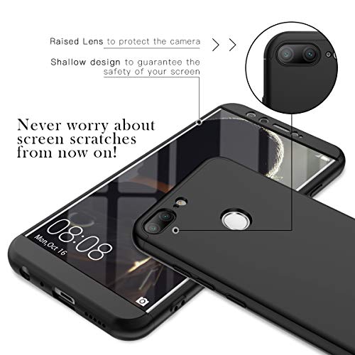 Winhoo Cover per Huawei Honor 9 Lite, Smart Cover Case Cover Cover Ultra Sottile in PC Materiale 3 in 1 Duro Antigraffio Opaco PC Cover 360 Gradi Protector - Nero