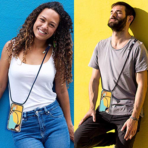 Winhoo per Cover iPhone XR con Cinturino in Silicone e Custodia Rigida Trasparente AntiGraffio Cover Holder con Smartphone Collana Neck Strap Chain Neck Cord - Nero