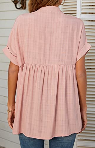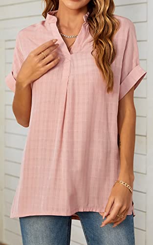 WINKEEY Camicie estive da Donna Eleganti Bluse da Donna con Scollo a V a Maniche Corte Top, Rosa L