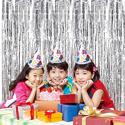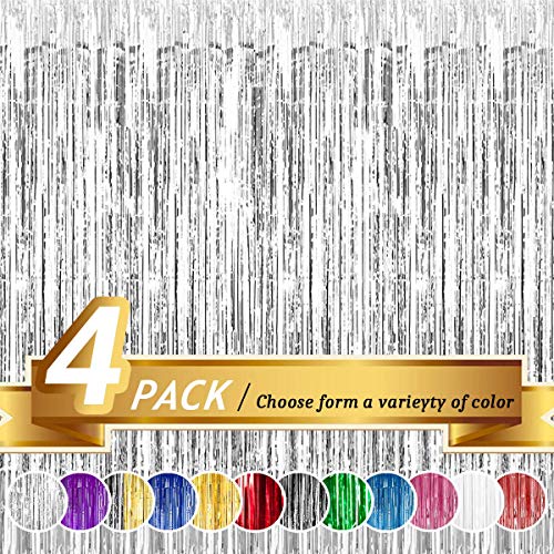 Winko Silver foil Fringe Curtain, Metallic photo booth Tinsel fondale porta tende per matrimoni, compleanni e speciali festival decorazione (3,7 x 2,4 m, 4 pezzi)