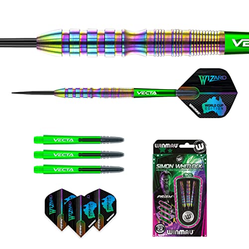 WINMAU Simon Whitlock Urban World Cup Edition 22 Gram Professional Steeltip Freccette in Tungsteno Set con Alette e Steli (Shafts)