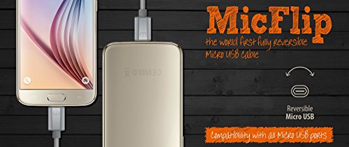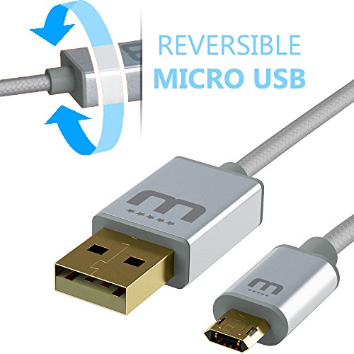 WinnerGear MicFlip 100cm Silver reversibili Micro USB Cavo Cable Cavo di alimentazione USB supporta quick charge per caricare Samsung LG HTC Nokia Blackberry S4 S5 S6 Edge Plus Note 4 5 Xperia Z3 Z4 Z5 Compact