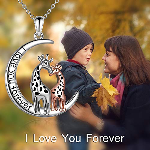 WINNICACA S925 Collana giraffa argento per donne giraffe ciondolo simpatico collana animale gioielli di famiglia regali per mamma figlia mamma regali