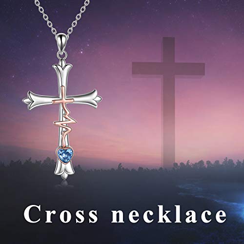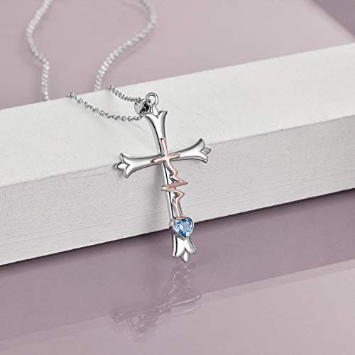 WINNICACA Pendente a croce Fede Hope Amore Collana S925 Sterling Sterling And Sterling With March Birthstone Jewellery per le donne Mom Regali
