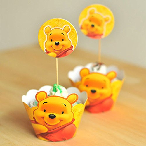 12 x Winnie the Pooh per festa di compleanno, baby shower o battesimi cake topper per cupcake Wrapper &