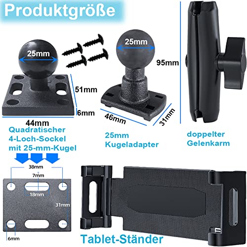 □ MONTAGGIO FACILE: la base con adattatore a sfera da 25 mm/1 pollice è fissata con 4 viti, si può facilmente fissare al cruscotto, alla parete, alla scrivania o a superfici lisce in cucina e studio (preparare un cacciavite prima dell'installazione)
