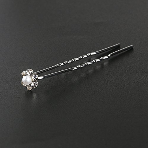 WINOMO 10pcs Sposa Fiore Perla Strass Forcine Fermagli (Bianco + Argento)