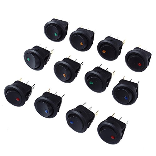 WINOMO 12pcs 12 V 20 a auto camion rotondo Toggle Rocker interruttore SPST controllo on/off con LED rosso blu verde giallo Pere