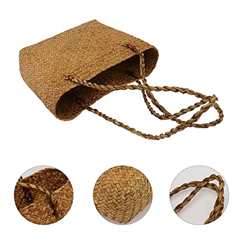 WINOMO - Borsa a tracolla in rattan, in paglia, per l'estate, da spiaggia, in rattan, stile rustico, tessuto a mano, per donne e ragazze