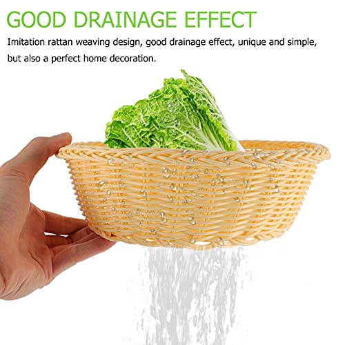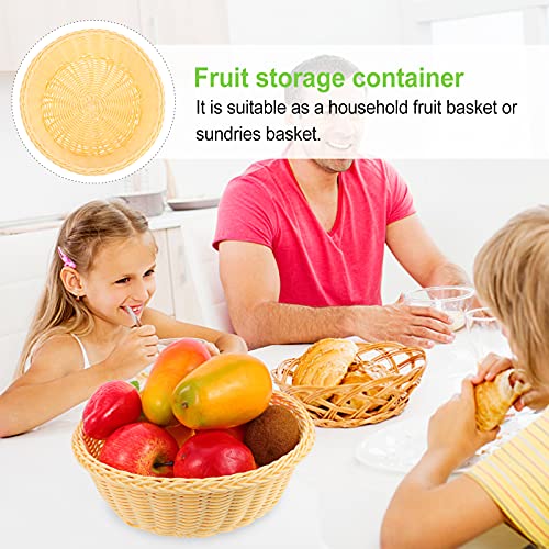 WINOMO Cestino per il pane in plastica beige cestino rotondo per la cucina in vimini, contenitore per il pane in rattan, giocattoli per riporre piatti di frutta e vassoio organizer per la casa