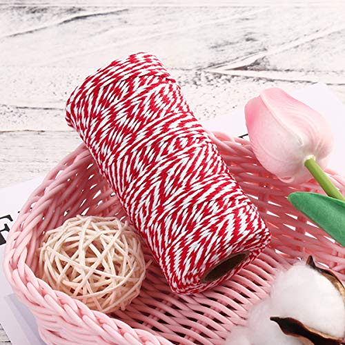Winomo, corda di cotone per pasticceria, per decorare bottiglie, scatole, regali, decorazioni, fai da te,100 m (rosso+ bianco), Rosso, bianco, 100m
