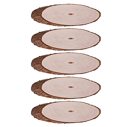 Winomo - 5 fette di legno non compiute con corteccia ovale a disco per albero a fette cerchio, in legno, decorazioni in legno, decorazioni per decorazioni fai da te, 25-30 cm