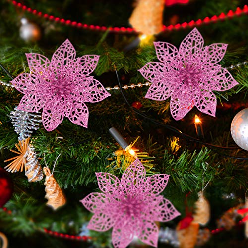 WINOMO Fiori artificiali per la decorazione albero di natale Fiori glitter in rosa