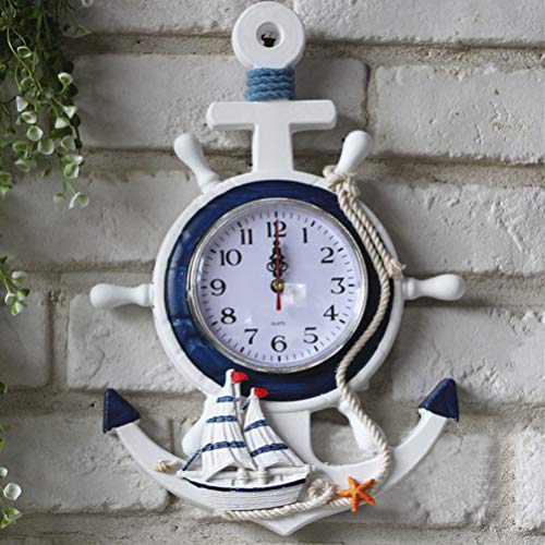 Winomo Orologio da parete con ancora in stile mediterraneo, tema mare, nautico, timone, volante, decorazione da parete