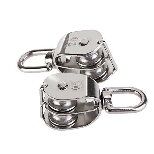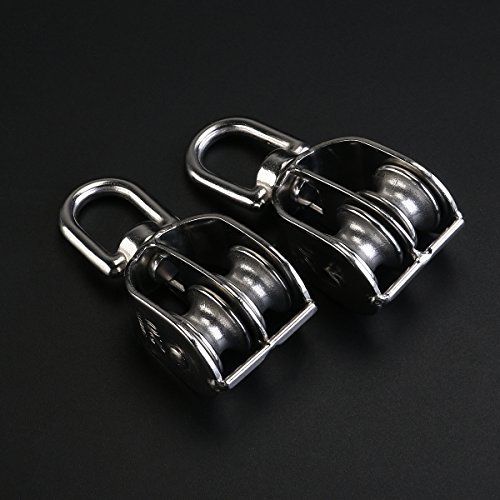 WINOMO 2pz Paranco doppio 304 Bozzello girevole Puleggia blocco in acciaio inox