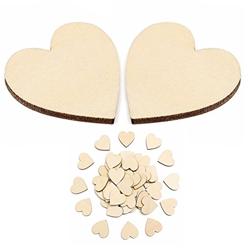 WINOMO 50 pezzi a forma di cuore tranche en bois peint non bouleau naturel bricolage Artisanat embellissements 6cm