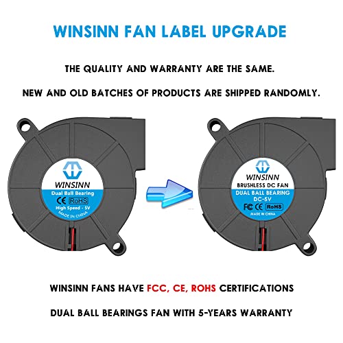 WINSINN - Mini ventilatore 5015 da 50 mm 5 V USB, piccola turbina di raffreddamento brushless con cuscinetto a sfera doppio, cavo da 100 cm, 50 x 15 mm, in confezione da 4 pezzi