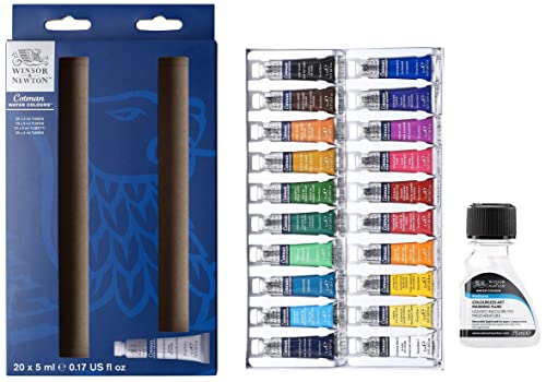 Winsor & Newton Cotman 390665 Set Di Colori Ad Acquerello, Multicolore, 20 Colori & Fluido Incolore Per Mascherature Per Acquerello 75 Ml