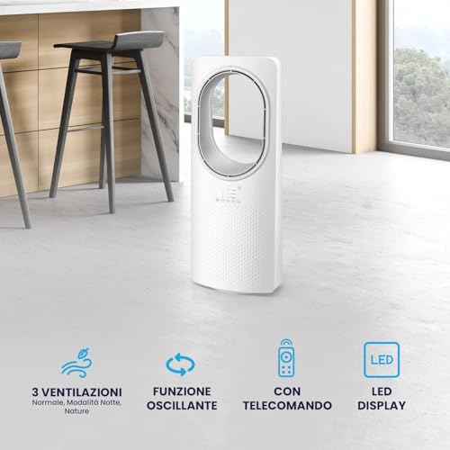 Wintem Ventilatore Freezy a Torre senza Pale con Telecomando e Timer Raffrescatore a Vortice con Oscillazione 3 Modalità e 3 Velocità Timer 15 ore 50W