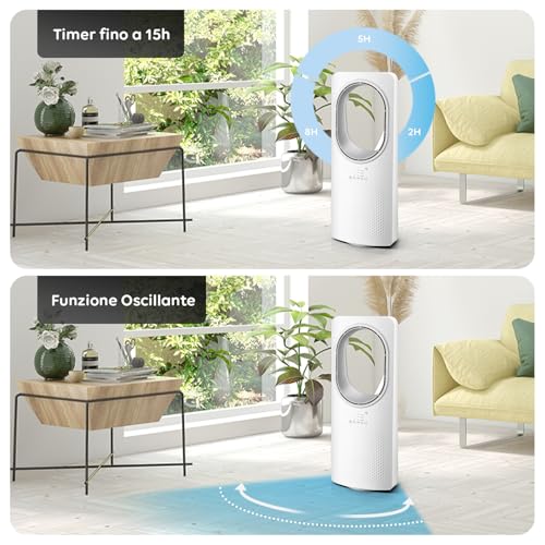 Il timer integrato di Freezy ti permette di programmare il funzionamento del ventilatore fino a 15 ore, garantendo un comfort ottimale senza preoccuparti di spegnerlo manualmente.