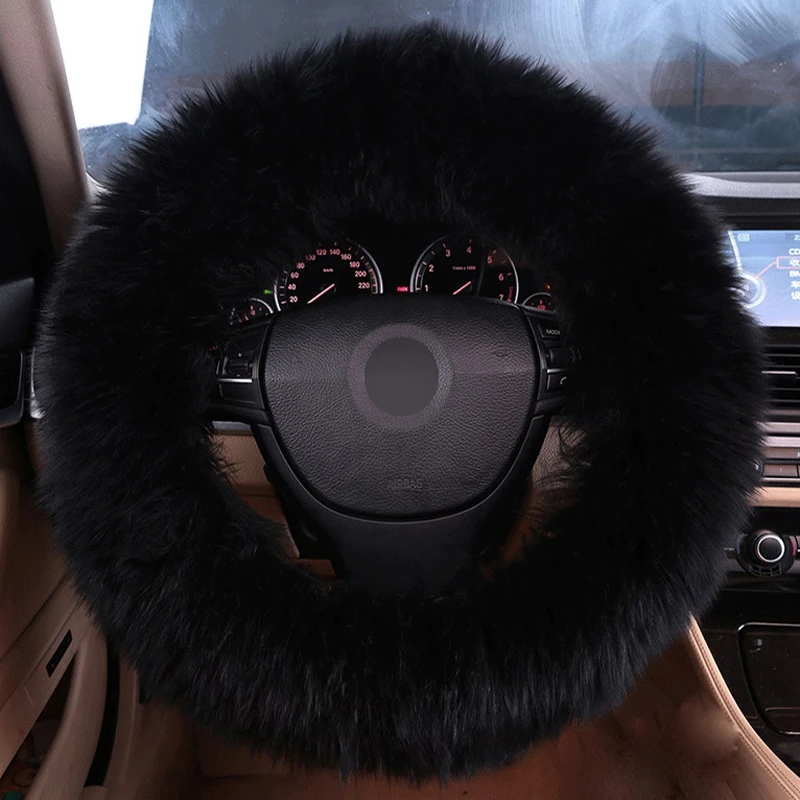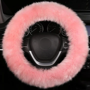 Long Winter Wool Leather Braid on Car Steering Wheel Cover For 36 38 40 42CM Steering-Wheel Soft Warm Stuurhoes Volant 13 Colors