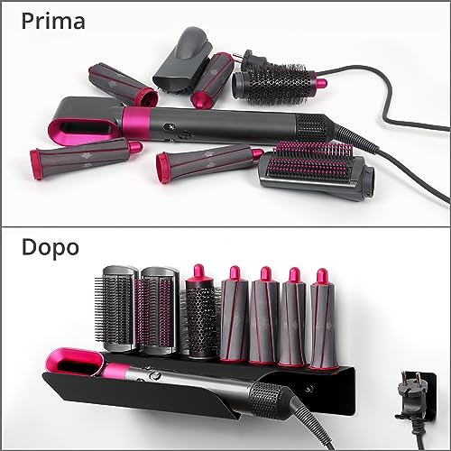 SUPPORTO PHON SU MISURA - Basta con cavi o strumenti per acconciatura caldi abbandonati sul ripiano della toeletta o in bagno. Il nostro porta phon da parete è stato progettato per essere compatibile con lo styler Dyson Airwrap e tutti i suoi accessori!