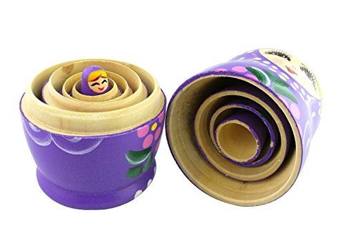 Winterworm 1 Set di 5 Blonde Girl Viola in Legno per Bambini per impilamento Babushka Matryoshka Russian Nesting Doll Regali Giocattolo per Bambini