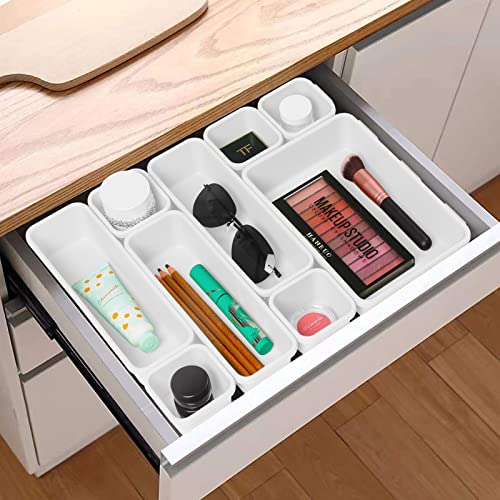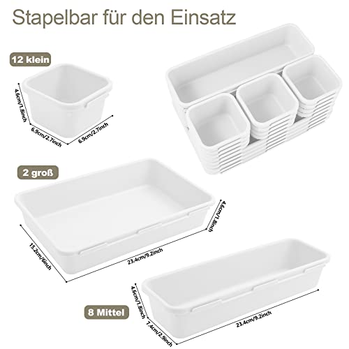 Wintfarm Divisori per cassetti da scrivania, 22 pezzi, 3 misure, vassoi in plastica per riporre cassettiere, cosmetici, cancelleria da ufficio, utensili da cucina (bianco)