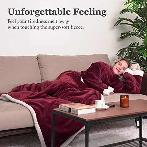 Winthome Coperta Matrimoniale Invernale, Coperta con Maniche Morbida e Calda, Coperta Indossabile con Tasche Grandi, Coperte per Regali Invernali Risparmio sui Costi di Riscaldamento (140x180cm Plaid)