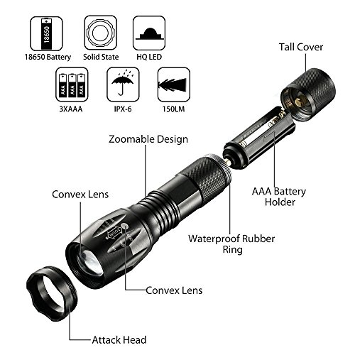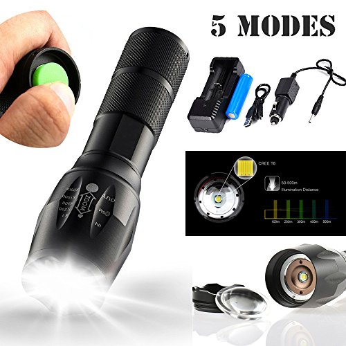 WINWINTOM 5000LM Zoomable T6 LED Tactical Police Flashlight +18650 Battery