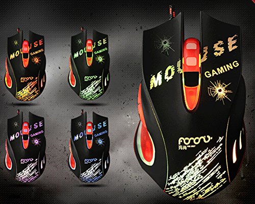 USB Wired Gaming Mouse ottico per computer desktop PC laptop, 3 pulsanti, design ergonomico ad alta precisione mouse con luce variopinta respirazione per gli appassionati di gioco