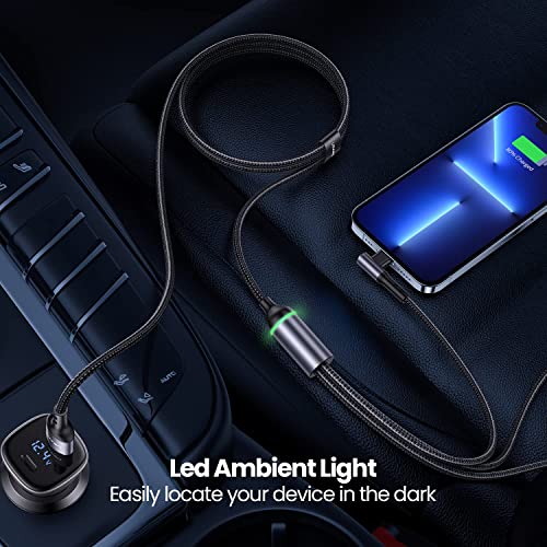【Design del connettore ad angolo di 90 Gradi】: Questo Cavo di Ricarica Multiplo da 90 gradi con innovativo design a "L" e luce LED ad anello, più comodo e confortevole per i giochi, è eccellente per i giocatori. Guarda video, leggi e-book quando carichi. Il design di tipo L e la treccia in nylon per doppia protezione, possono ridurre la flessione e proteggere l'interfaccia durante l'uso, prolungando la durata.