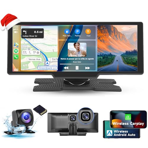 Wireless Apple Carplay Portatile Autoradio 9.3 Pollice Touchscreen Senza Fili Autoradio con Wireless Android Auto Vivavoce Bluetooth/FM Radio Sender/Loop Video/Siri/Navigazione GPS/32 G TF Carte