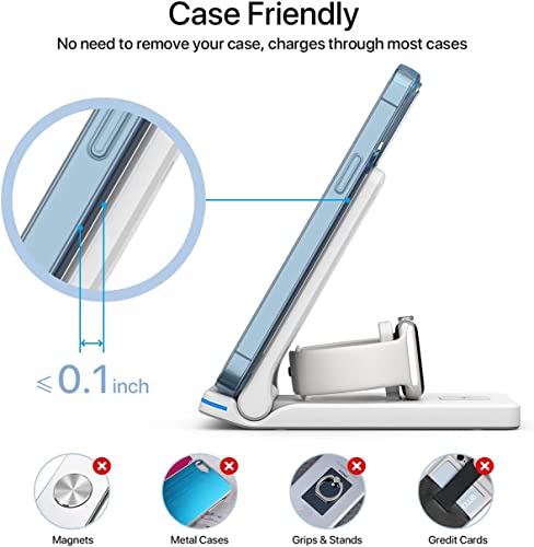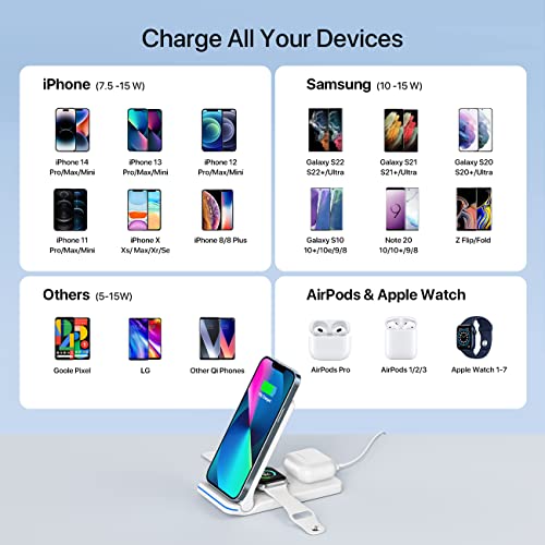 Wireless Charging Station, 3 in 1 Foldable Fast Charging Station, Wireless Charger Stand for iPhone 12/12 Pro/Mini/11/11 Pro Max/XR/X/Xs/8 Series,AirPods,iWatch,Samsung Phones(Wireless Charger, White)