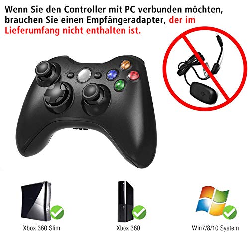 Supporta Xbox 360 e PC: questo controller è compatibile con Xbox 360 e può essere giocato tramite PC. Nota: se si crea una connessione a Xbox 360, il controller deve funzionare immediatamente. Per un PC è necessario acquistare un adattatore ricevitore Xbox 360 (adattatore non incluso).