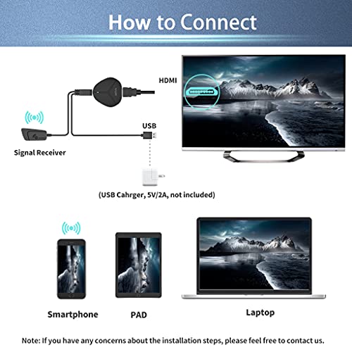 【Segnale stabile e connessione di un minuto】 Con un chip avanzato, l'adattatore display HDMI wireless può fornire un trasferimento del segnale stabile con buffering minimo e mirroring veloce. Nessun cavo disordinato, collegalo entro 1 min. ① Basta collegare il dongle alla porta HDMI ;② Alimentarlo;