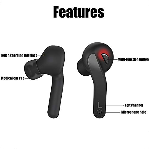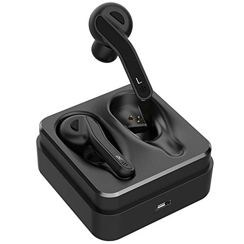GWJ Real Wireless Headset, Auricolare Bluetooth 5,0 Con Scatola Di Ricarica Portatile, Ultra-Piccolo Mini Auricolari Stereo Cancellazione Di Rumore Cuffie, Ultra Fast Matching,Black