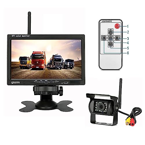 Kit telecamera posteriore: 7 "Monitor LCD TFT + Telecamera di retromarcia per visione notturna wireless ad uso intensivo. Con telecomando, portata di trasmissione wireless fino a 15 m.