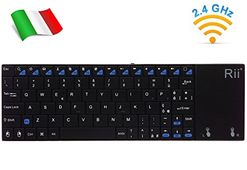 Rii Mini i12 Wireless (Layout Italiano) - Tastiera Wireless Ultrasottile con Mouse touchpad per Smart TV, Mini PC, HTPC, Console, Computer