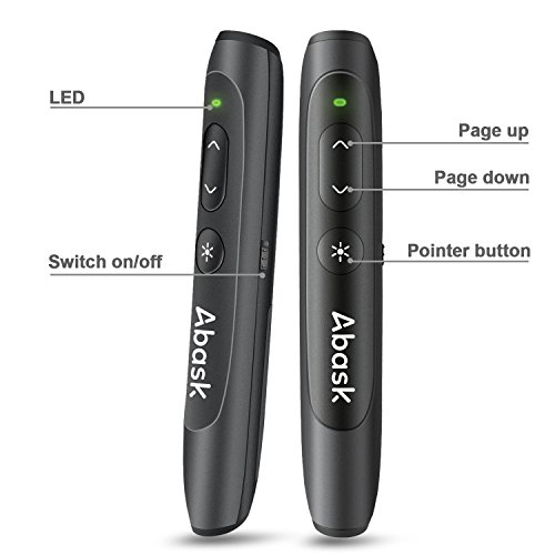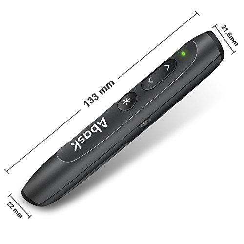Wireless Presentatore,Abask 2.4GHz Mini USB Ricevitore,Telecomando Presentazione con PPT/Tema /Prezi/OpenOffice / Windows/Mac OS/Android / Linux Hyperlink e Controllo del Volume