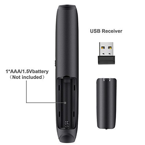 【Ampia gamma di utilizzo】Abask Presentatore Dotato di microchip di prima classe,Funziona alla frequenza RF di 2.4G, che è una frequenza libera gratuita di ISM,può essere utilizzato su scala globale.Gamma wireless 100m, controllo a 360°.Supporta l'hopping automatico di frequenza,evitare efficacemente l'interferenza con altri segnali RF.
