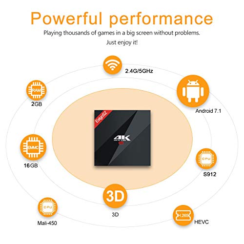 Mini Wireless Tastiera - EstgoSZ 4K Ultra HD Android 7.1 Smart TV Box con 2GB RAM 16GB ROM Amlogic S912 64bit Octa-core CPU Support 2.4G/5G Dual-Band Wifi 1000M LAN H.265 3D Bluetooth 4.1 Set Top Box