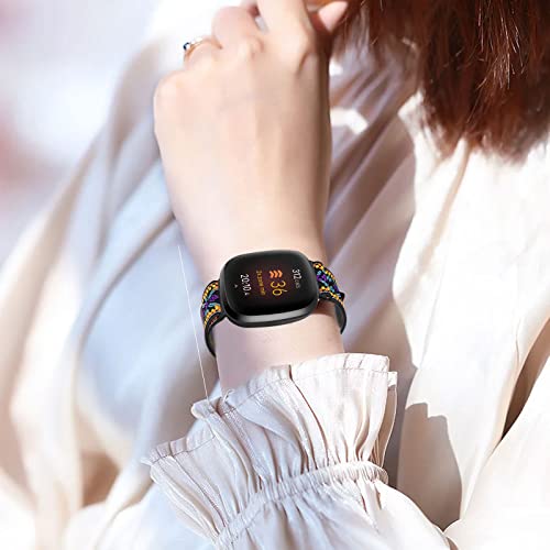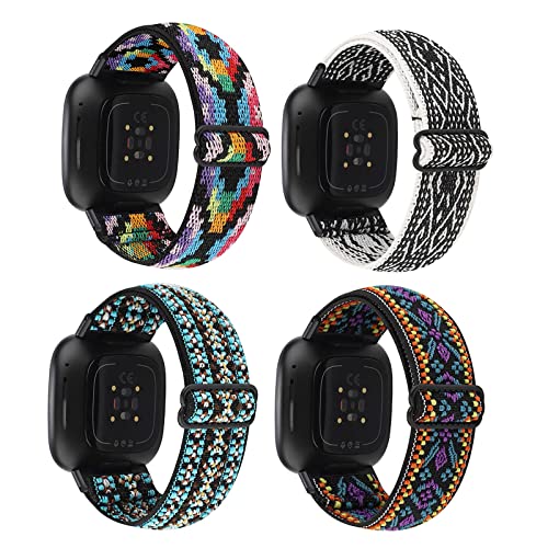 WIRSHO 4 Pezzi Cinturino in Nylon Compatibile con Fitbit Versa 3 4, Cinturini di Ricambi Flessibile Regolabile per Polso 120-190mm, Cinturino Sportivo per Donna Uomo - 4 Stili e Colori