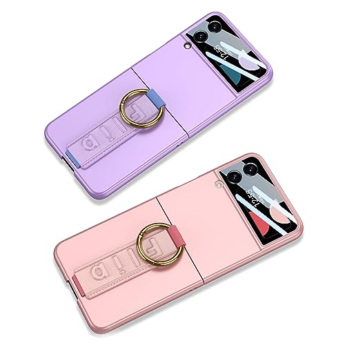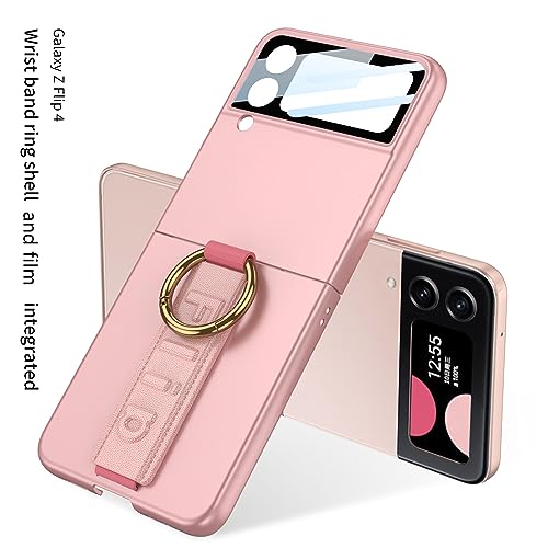 Wirvyuer Compatibile con Samsung Galaxy Z Flip4 5G Cover con Anello Custodia Rigida PC pieghevole Cover con Cinturino Matte Antiurto Protettiva Cover per Galaxy Z Flip4 5G(2022) Rosa