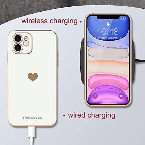 Wirvyuer Cover Compatibile con iPhone 11(6.1") Custodia Carino Cuore ragazza Cover Protezione Fotocamera Galvanotecnica Morbido Silicone Antiurto Protettiva Case per iPhone 11 Bianco