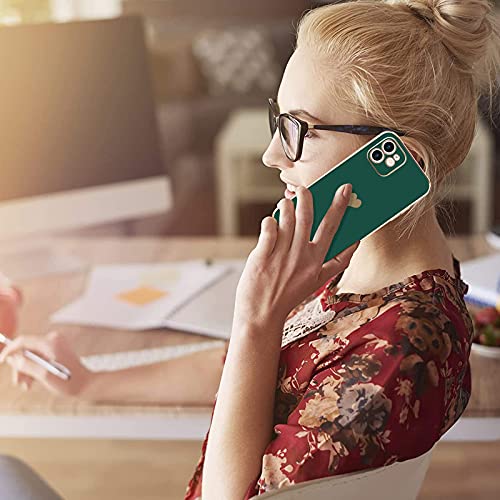 Wirvyuer Cover Compatibile con iPhone 12(6.1") Custodia Carino Cuore ragazza Cover Protezione Fotocamera Galvanotecnica Morbido Silicone Antiurto Protettiva Case per iPhone 12 Verde Scuro
